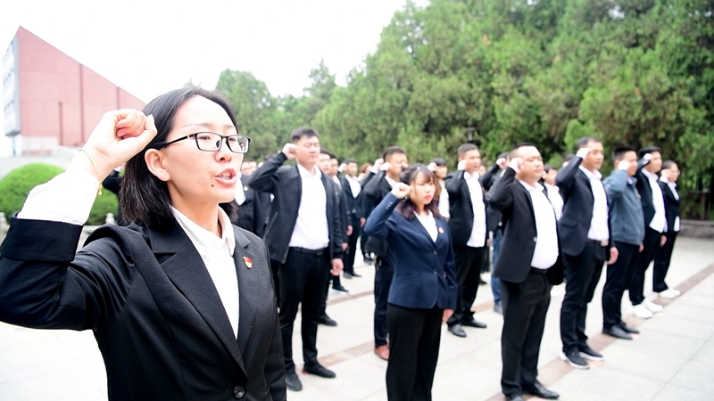 “我志愿加入中国共产党,拥护党的纲领,遵守党的章程,履行党员义务,执行党的决定,严守党的纪律,保守党的秘密,对党忠诚,积极工作,为共产主义奋斗终身,随时准备为党和人民牺牲一切,永不叛党。”全体人员站在烈士英名塔前,面对鲜红的共产党党旗,高举右手、紧握拳头,以铿锵之声重温入党誓词,并向战役烈士们敬献花篮,以此表达对革命先烈的崇高敬意,铮铮誓言展现出美好兴隆人不忘初心、牢记使命的信心和决心。