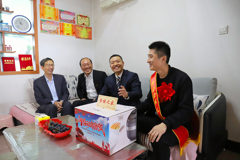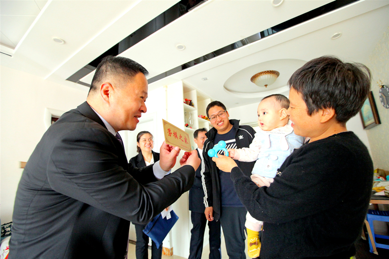 和周勇一样收到慰问品和光荣牌的还有60多名近年来涌现出来的先模职工。据阳光暖心志愿者介绍,他们已连续三年上门慰问,目的就是为了让先模们在街坊邻里和妻儿老小跟前把面子攒足,激励先模再接再厉再做新贡献。