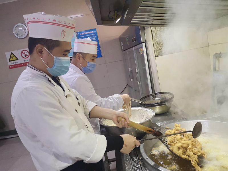 技术骨干传身教,培训课堂搬现场。“一团面,要不少于12扣,才能叫龙须面。但是面一旦拉长之后,就很容易黏在一起。你在和面的时候要掌握好盐的分量,柔面的时候一定要注意力度,再练练。”这是利用下班时间,职工食堂面点大师牛运兵带领班组人员上“小课”的情景,为迅速提升员工技能,该中心跳出课堂教学的培训模式,组织经验丰富的技术骨干,利用业余时间,围绕烹饪、面点工作难点痛点、技术瓶颈,针对实际情况具体分析,现场讲解,将学习内容渗透到实际操作的每个环节,让员工提升技能。