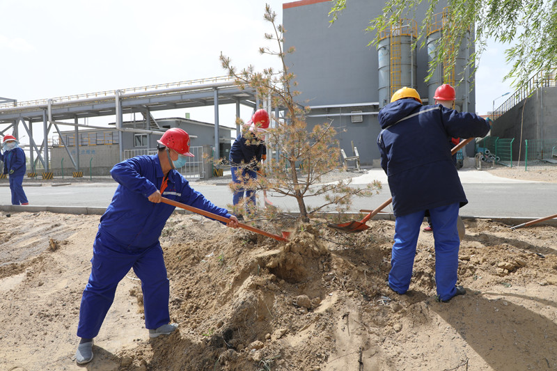 原来这个地方是临时施工所用的蓄水池,为了节约资金、美化环境,该公司自行组织人员用铲车将大土坑填平。那几天正好碰上扬沙天气,但他们并没有因此休息,秦德军和物业公司人员带着帽子、手套和防尘口罩,在黄沙弥漫的狂风中手持铁锨,一锹一锹将地面整理平坦。地面平整以后,他们又为周围的柳树、杨树等培土、浇水,这一举动为该公司节约资金数千元。