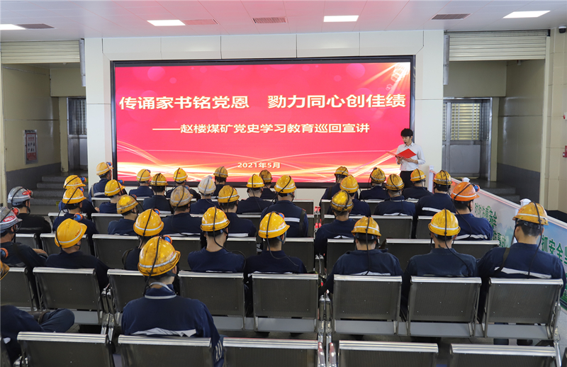 这是赵楼煤矿近日组织开展的“传诵家书铭党恩、勠力同心创佳绩”形势任务巡回宣讲活动现场。自党史学习教育开展以来,赵楼煤矿聚焦两级公司党史学习教育系列会议文件精神,制定党史学习教育责任分工清单,充分利用网站、微信、广播、简报、宣传橱窗等形式,强势掀起党史学习教育宣教热潮。