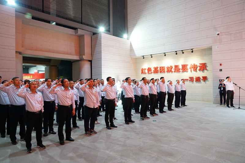 在战役纪念馆内,全体人员集体重温入党誓词。大家怀着崇敬的心情,认真聆听讲解员讲解,了解战役经过,追忆先辈的艰辛岁月和光辉历史。一幅幅珍贵的图片,一杆杆锈迹斑斑的枪械武器,一个个先烈们不畏牺牲的感人事迹,全面形象地展现了革命前辈浴血奋战的光辉历史,近距离感受红色岁月中的革命情怀,心灵受到震撼,思想得到升华,引起了全体人员的强烈共鸣。