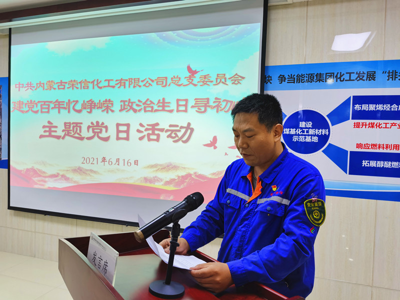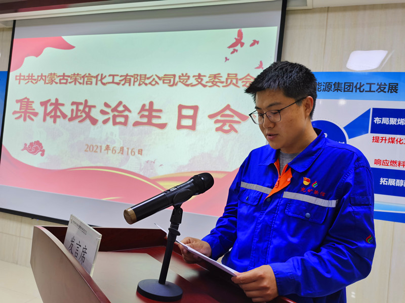 建党百年之际,荣信化工党总支为6、7月份入党的党员集体过“政治生日”。通过“重温一次入党誓词、唱一首红色歌曲、赠送一张生日贺卡、党员汇报一次思想、书记赠送一段寄语”,引导党员重温初心、铭记使命,增强共产党员的身份感、荣誉感和使命感。