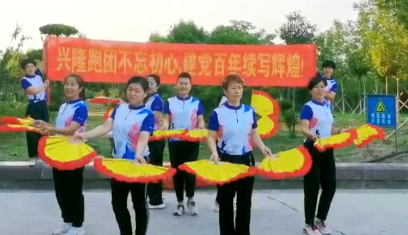 美好兴隆跑团的成员,利用手中的扇子,一会排成五角星,一会排成中国共产党的字样,举手投足间皆充满力量,他们用心用情、独具匠心制作成微视频,向党的生日送上祝福!