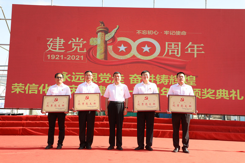 6月29日下午,荣信化工“永远跟党走 奋进铸辉煌”庆祝建党一百周年暨颁奖典礼,在该公司厂区荣信大道顺利举行。该公司班子成员、副总工程师、各科室车间、外委单位员工和家属近400人观看了演出。