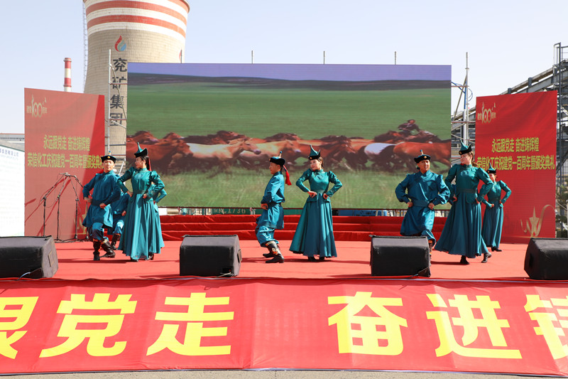 典礼在壮美荣信合唱团《我们都是追梦人》和全场齐唱《我的中国心》歌声中拉开帷幕。歌曲《我们走在大路上》《把一切献给党》《不忘初心》《祖国不会忘记》展示了广大干部职工的乐观主义情怀和坚贞不移的信仰。合唱《共筑中国梦》《相亲相爱一家人》《明天会更好》《国家》,表达了全体干部职工决心在党的领导下,把荣信化工建设得更加和谐美好的强烈愿望。达拉特旗乌兰牧骑演员们表演的《鄂尔多斯舞》、器乐合奏《欢乐的挤奶舞曲》和职工子女演奏的架子鼓,为职工们送上视觉和听觉上的双重享受;幽默诙谐的三句半《永远跟党走》和配乐朗诵《青春中国》将典礼的气氛推向高潮。最后,典礼在《同一首歌》中落下帷幕。