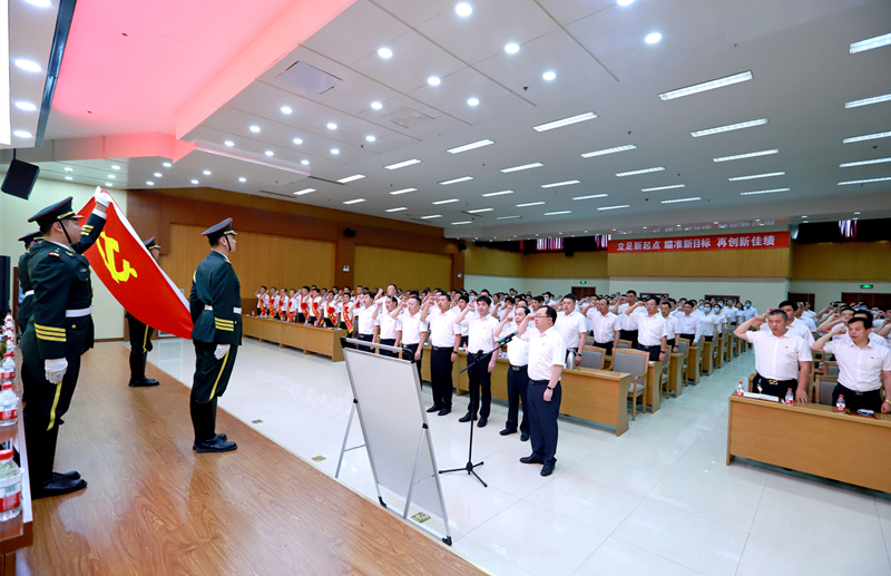 “我志愿加入中国共产党,拥护党的纲领,遵守党的章程……”随着一面鲜红的党旗擎起,全体党员握紧右拳重温入党誓词,铿锵有力的声音流露出赵楼人的拳拳爱党之心。会上还首发播放了一部由赵楼人自拍自导的《走向复兴》MV,他们以歌声铭记初心、用旋律坚定信念,彰显着赵楼人阔步新征程、展现新作为、贡献新山能的壮志豪情。