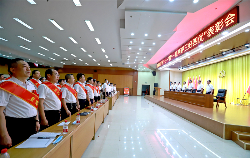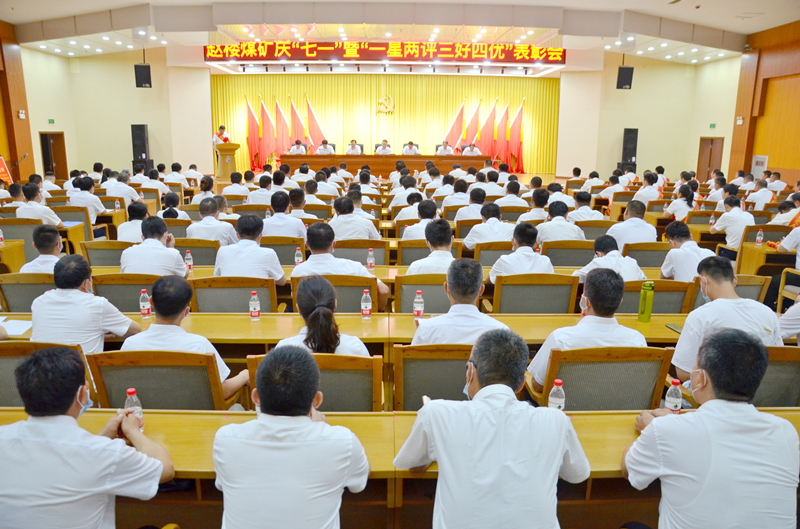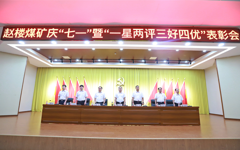 这是赵楼煤矿党委庆“七一”暨“一星两评三好四优”表彰会上,“五星”过硬党支部、“四好”领导班子、“四有”好助手、“四同”好搭档、“四优”共产党员等等先进集体和个人登上领奖台的一幕。