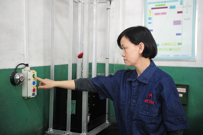 “我们只需把采好的煤样放到这里,按下按钮后就会响铃,这个自动提升系统就会把煤样提升上去,用二十秒的时间替代了以往二十分钟的运送煤样时间,大大提高了工作效率。”该矿选煤中心技检车间采制样班组汤冬梅一边展示一边说道。