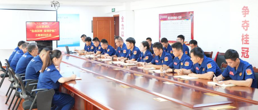 9月25日下午,山东能源队集训队会议室暖意融融,“备战国赛・温情护航”主题慰问活动在此开展。大队领导、党群业务部室负责人与正在备战第十三届全国矿山救援技能竞赛的全体国赛队员齐聚一堂,通过座谈交流、视频祝福、礼物赠送,为即将踏上征程的队友们舒缓压力,传递关怀与力量。