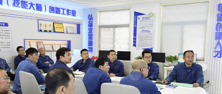 “劳模挂帅,职工唱戏。”徐辉劳模创新工作室2023年底成立,设有汽轮动力、火焰创效、智能控制、电气先锋四个技术小组,汇聚了一批技术精湛、勇于创新的骨干力量,有山东能源集团劳动模范2名,山东省技术能手1名,山能工匠2名,兖矿工匠2名,未来工匠2名,兖矿能源技能大师2名,是公司技术攻关创新和人才培养的重要平台。