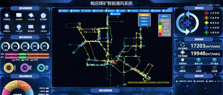 鲍店煤矿持续加大智能化投入,为传统通防工作安装“智慧大脑”,推动通防管理从“人防”向“技防”“智防”转变。目前,变频局部通风机、智能风门、智能喷雾、采空区光纤测温等4项智能化项目稳步推进,实现通防关键环节的实时监测、远程操控与智能预警。