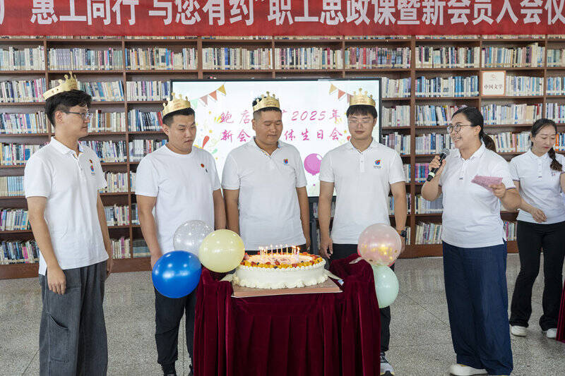 生日会现场布置温馨,特意准备了精美的生日蛋糕和生日礼物。领导与老员工们共同为新员工唱生日歌、送祝福,大家围坐在一起分享快乐、畅谈心声。活动现场,鲍店煤矿还组织新入职高校毕业生进行了庄严的工会入会仪式,为他们颁发了《工会工作使用手册》《中国工会章程》。充满仪式感的集体生日会,不仅让新员工感受到了矿井的用心与关怀,更拉近了新员工与老员工之间的距离,增强了团队的凝聚力与向心力。