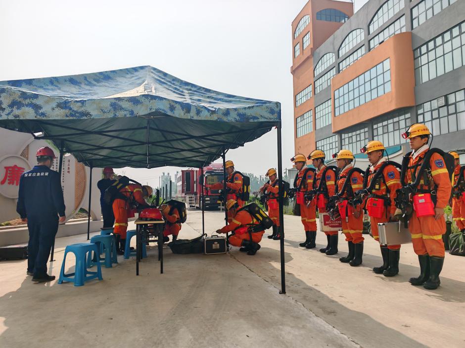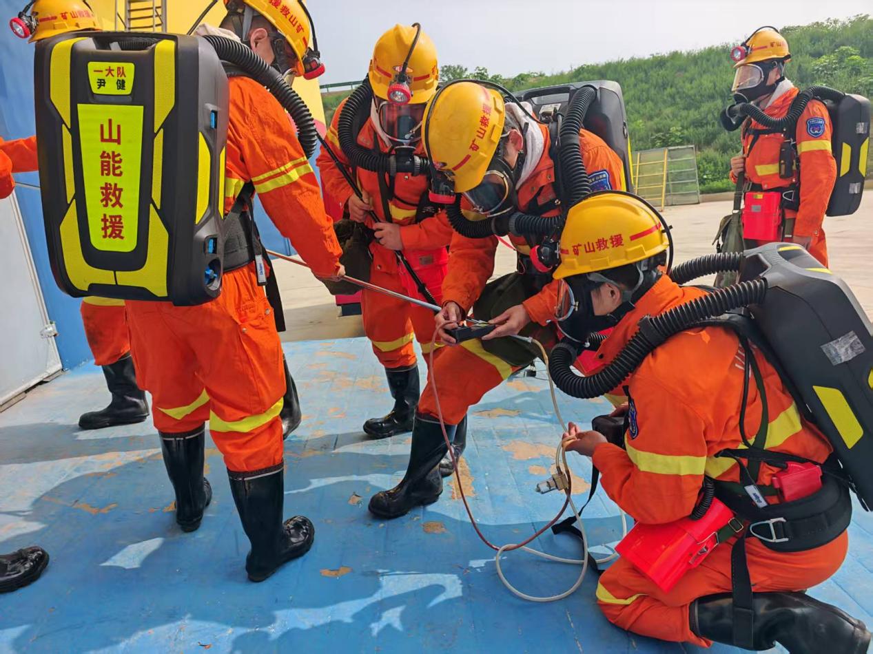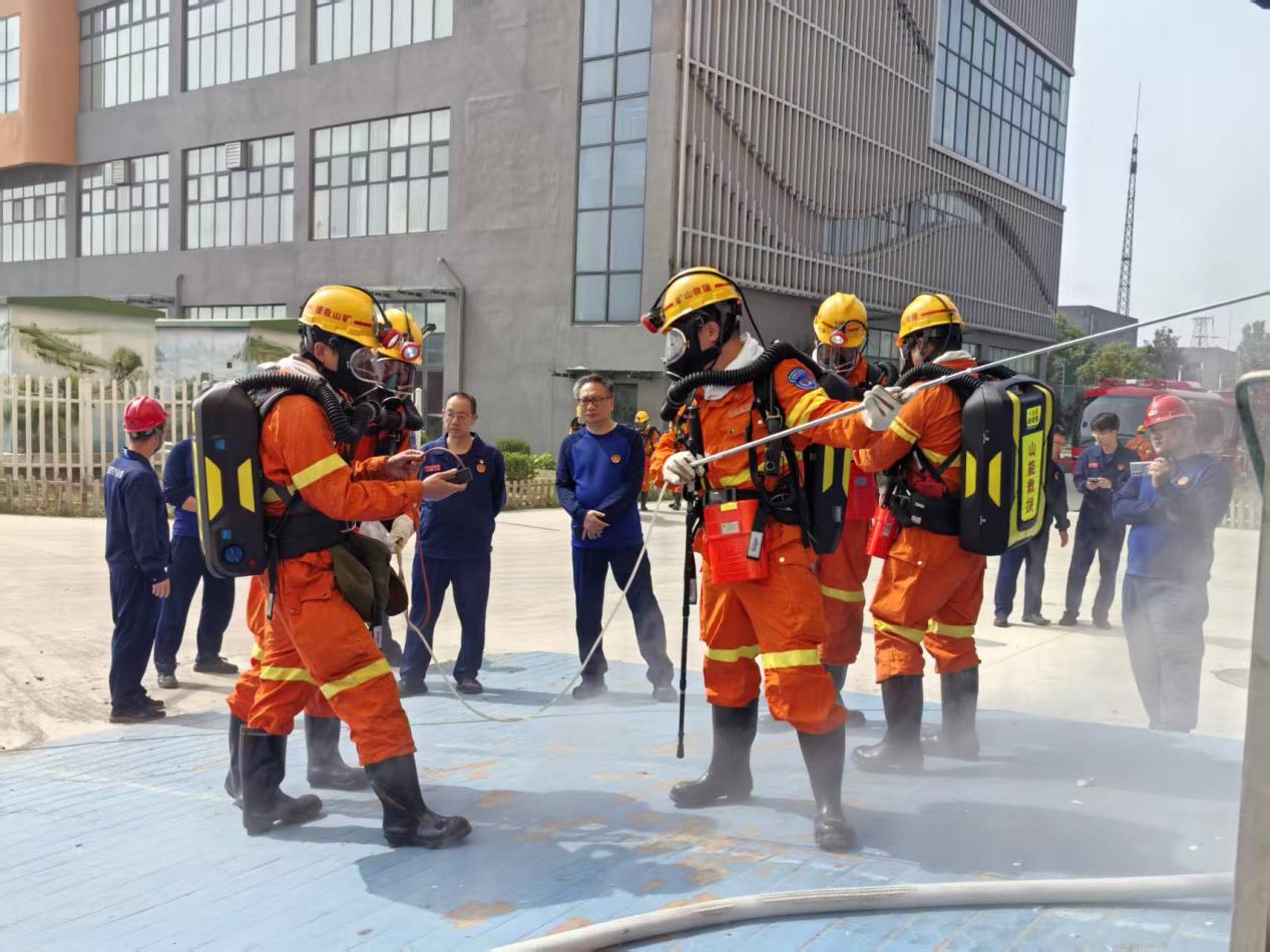 演练中,直属一中队精心组织、周密安排,出动2支救援小队、18名指战员,严格按照安全技术措施完成战前检查、任务分工及安全风险管控。演练模拟煤仓内煤炭自燃发火、1名人员被困的危急场景,设置1处可灭火源与2处不可灭火源,全程连续开展了战前检查、建立基地、灾区探察、遇险人员搜救、苏生器急救、灭火器灭火、液态二氧化碳灌注、局部通风机恢复通风及安全环境复查9个关键环节。