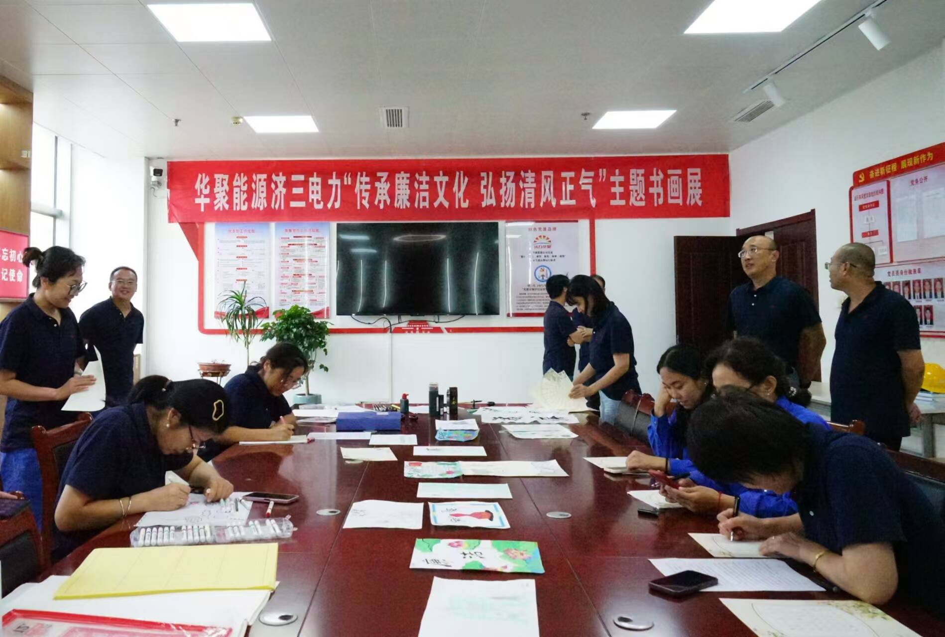 双节期间,华聚能源济三电力举办“传承廉洁文化 弘扬清风正气”主题书画展活动,以喜闻乐见的艺术形式,传递崇廉尚洁价值理念,营造风清气正工作氛围。