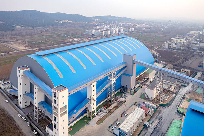 该项目在鲁南化工现有10万吨储煤棚东侧,新建储煤量40万吨条形储煤棚一座,实现可调度煤炭储备能力50万吨。储煤棚内配备一套堆、取料机及进出料带式输送机,将不同煤种自动卸至指定存储点,实现自动化堆、取煤。通过改造原1#转载点内分煤溜槽,将翻车机来煤再经带式输送机转载,可分别进入已有10万吨储煤棚和新建40万吨储煤棚储存。有利于兖矿能源延伸产业链,降低企业运行成本,提高设施利用率,为企业创造更大的经济效益。