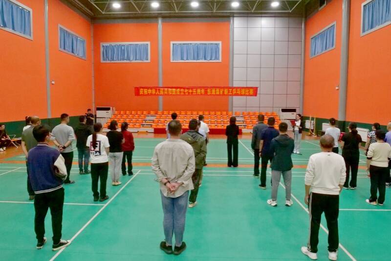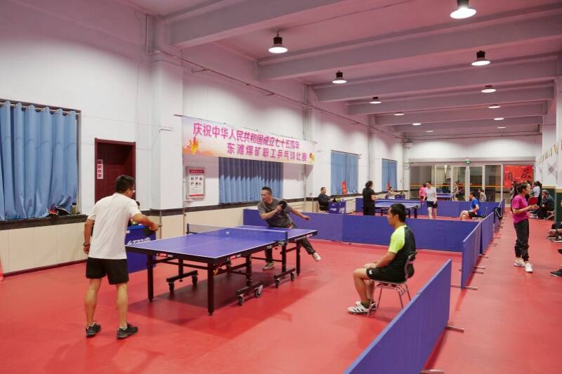 10月1日,为庆祝中华人民共和国成立75周年,弘扬爱国主义精神,进一步丰富广大职工节日文体生活,东滩煤矿在乒乓球馆举办“国庆同欢庆 健康工间行”职工乒乓球比赛。