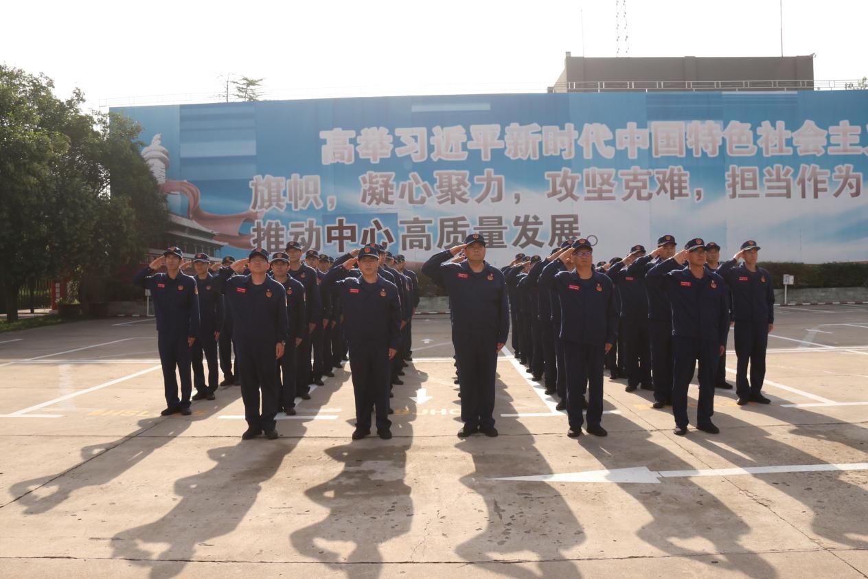 峥嵘岁月稠,七十五载风华正茂;盛世映寰宇,共筑中国梦辉煌。时值祖国75周年华诞,在这个举国欢庆的日子里,救护大队开展“迎国庆升国旗”升旗仪式及视频连线慰问活动,礼赞新中国成立75周年,与节日期间仍然奋斗在一线的指战员进行视频连线,为大家送上节日祝福。大队领导班子成员、副总师、各科室主要负责人、各科室全体留勤人员,直属一、七中队全体在岗人员参与本次活动。