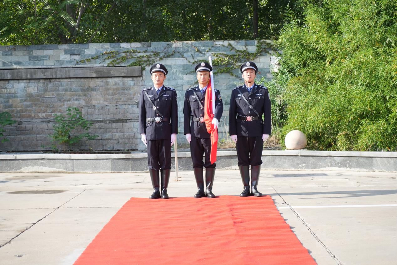 升旗仪式上,在全体人员的注目下,国旗护卫队队员们护送鲜艳的五星红旗进场,伴随着庄严的《义勇军进行曲》,五星红旗冉冉升起,大家向国旗行注目礼,表达对祖国的崇高敬意。