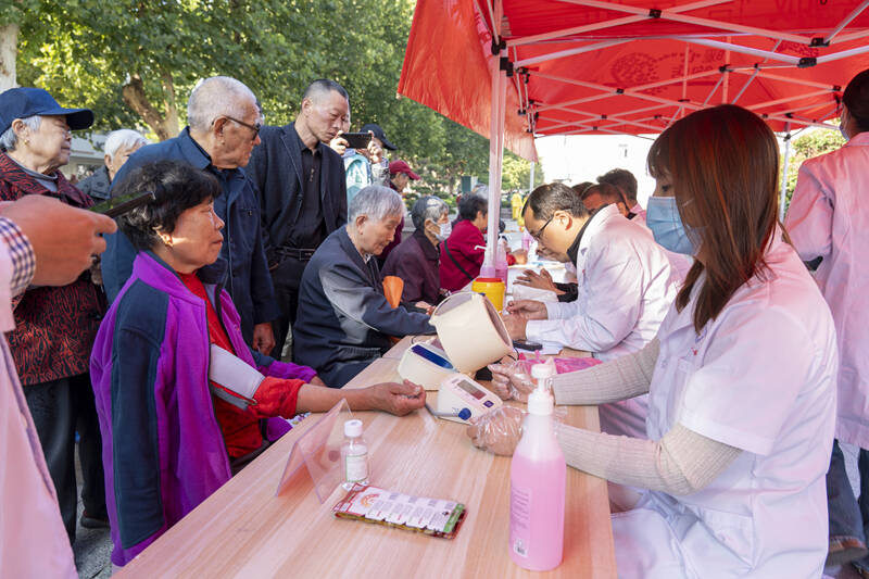 口腔诊查、量血压、测血糖、中医把脉、健康饮食咨询……义诊活动现场,工作人员耐心询问老人们的身体状况,用通俗易懂的语言向老人科普健康知识,提供了针对性的饮食、运动等生活方式的建议,并对老人们关心关切的常见健康的问题进行了耐心、细致的解答。