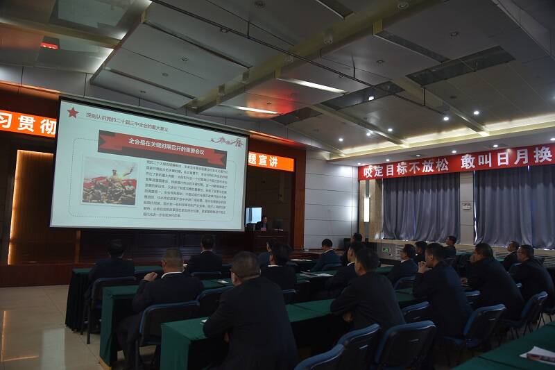 “党的二十届三中全会,是我们党的历史上又一个重要里程碑,深刻回答了在新的历史条件下举什么旗、走什么路、改什么、为谁改、怎么改等重大问题……”10月10日下午,在天池能源职工食堂三楼会议室,一场党的二十届三中全会精神专题宣讲正在进行中。