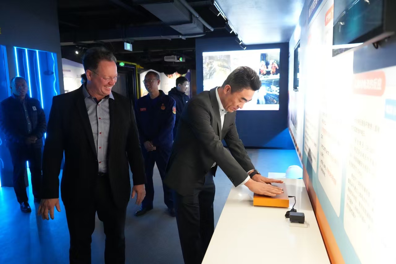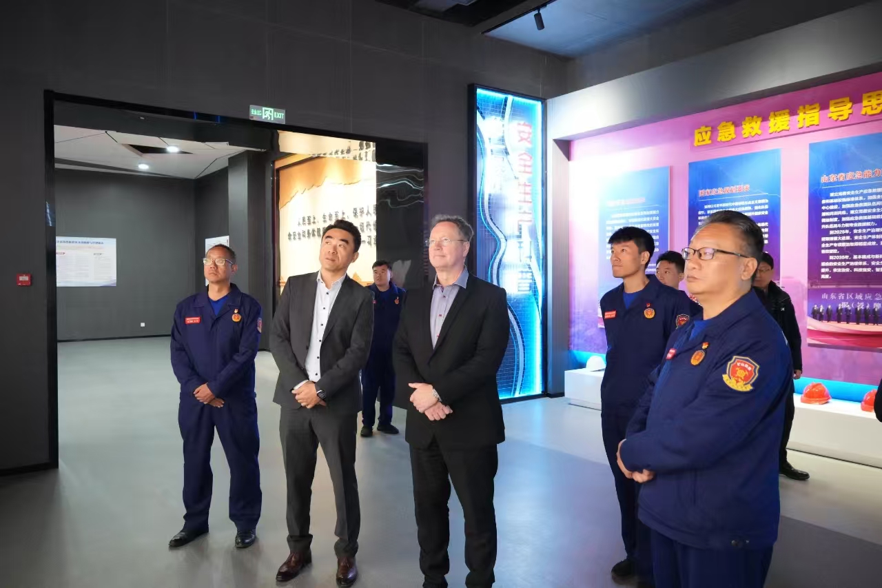 在仿真模拟训练馆,大队向德尔格公司客人科普了煤矿各类灾害事故的成因和处置、同时利用先进的VR设备和实景体验设施普及了心肺复苏、地震逃生、灭火器使用等安全知识。在井下模拟巷道,通过各种煤矿生产真实场景还原和各类应急救援装备使用场景展示,德尔格公司客人对煤矿生产和事故救援有了更加直观的认识。在救援装备库,德尔格公司客人详细了解各类救援装备使用情况,双方就救援装备适用性、可靠性等方面进行深入交流,下一步双方将会在救援装备研发、使用测试,提高救援装备适用性和可靠性等方面展开深入合作交流,共同推动应急救援装备水平再上新台阶。