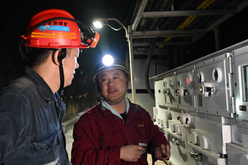 在营盘壕煤矿机运工区中央泵房,机运工区技术员、维修人员纷纷提问,与兖矿能源首席技能大师杨恭利进行了深入细致的现场交流。