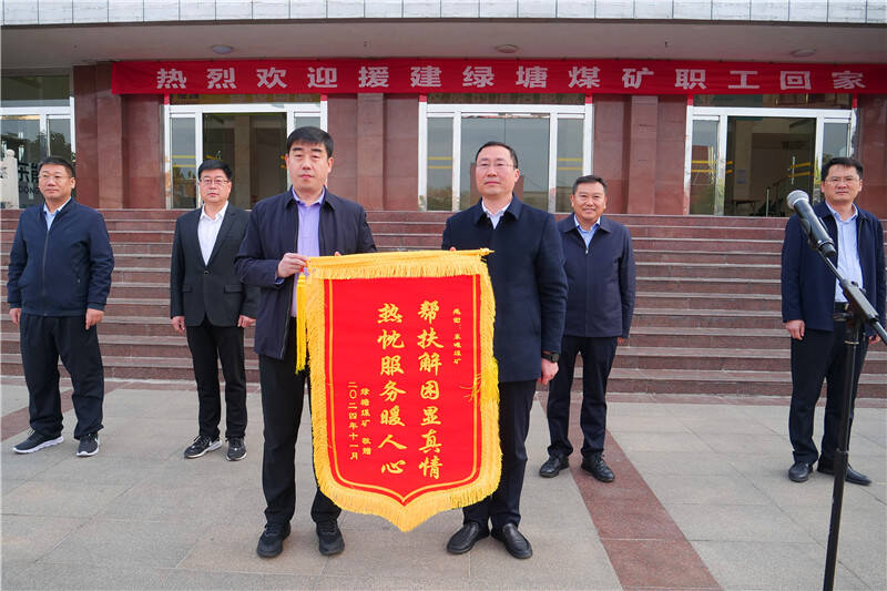 “在绿塘煤矿爬坡过坎、人员短缺等诸多问题的艰难时刻,东滩煤矿伸出援助之手,为我们提供了一支经验丰富、能打硬仗的队伍,为绿塘煤矿的安全生产、改革发展做出了积极的贡献。这支帮扶队伍在云贵高原展示的拼搏精神、奋斗精神,值得绿塘煤矿学习、借鉴,在绿塘煤矿的发展史上留下了浓墨重彩的一笔。”一路送行的绿塘煤矿党总支副书记、纪检员、工会主席张彦宽激动地说。活动中,他代表绿塘煤矿向东滩煤矿赠送了“帮扶解困显真情 热忱服务暖人心”的锦旗。
