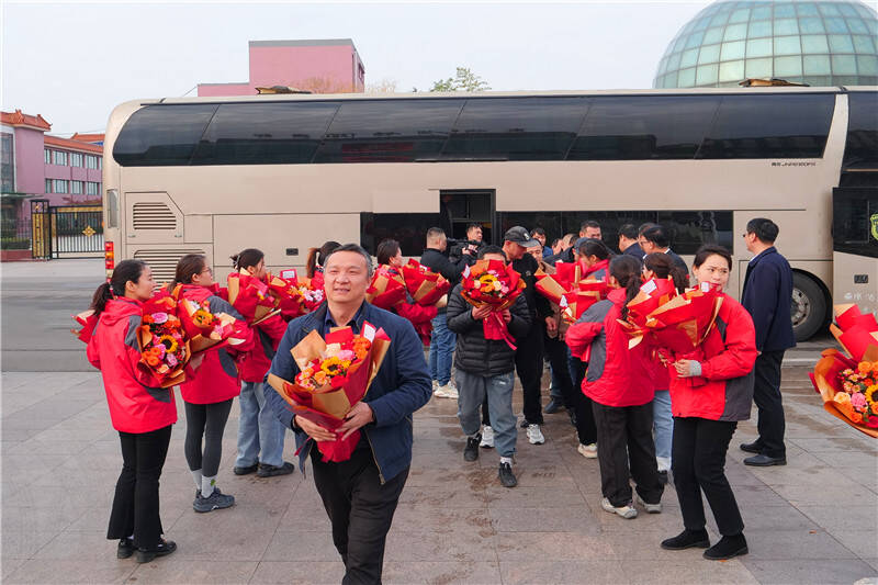 “辛苦了!”“欢迎回来!”“好样的!”刚一下车,该矿党委书记邢天海就和大家热情地握手,欢迎他们的归来。女工志愿者们将鲜艳的鲜花送给最亲、最可爱的人,职工们接过鲜花,脸上洋溢着幸福的笑容,有惊喜,但更多的是感动。