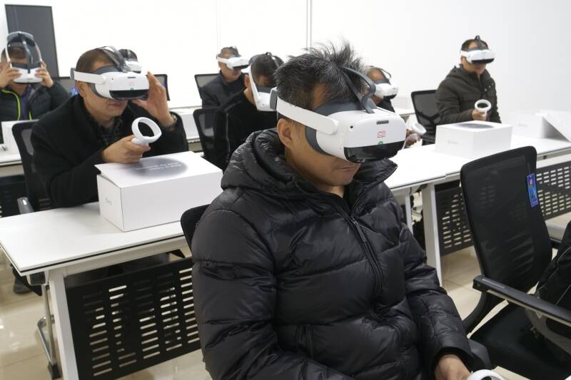在东滩煤矿的教育培训中心VR体验教室内,职工们依次戴上VR眼镜,手拿操作手柄。瞬间,深邃的巷道、轰鸣的机器声、熟悉的设备,仿佛将他们带到了真实的井下。
