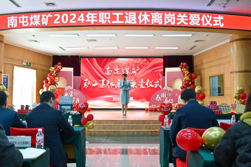 近日,南屯煤矿在高层裙楼会议室开展“光荣岁月 感谢有你”2024 年职工退休离岗关爱仪式。