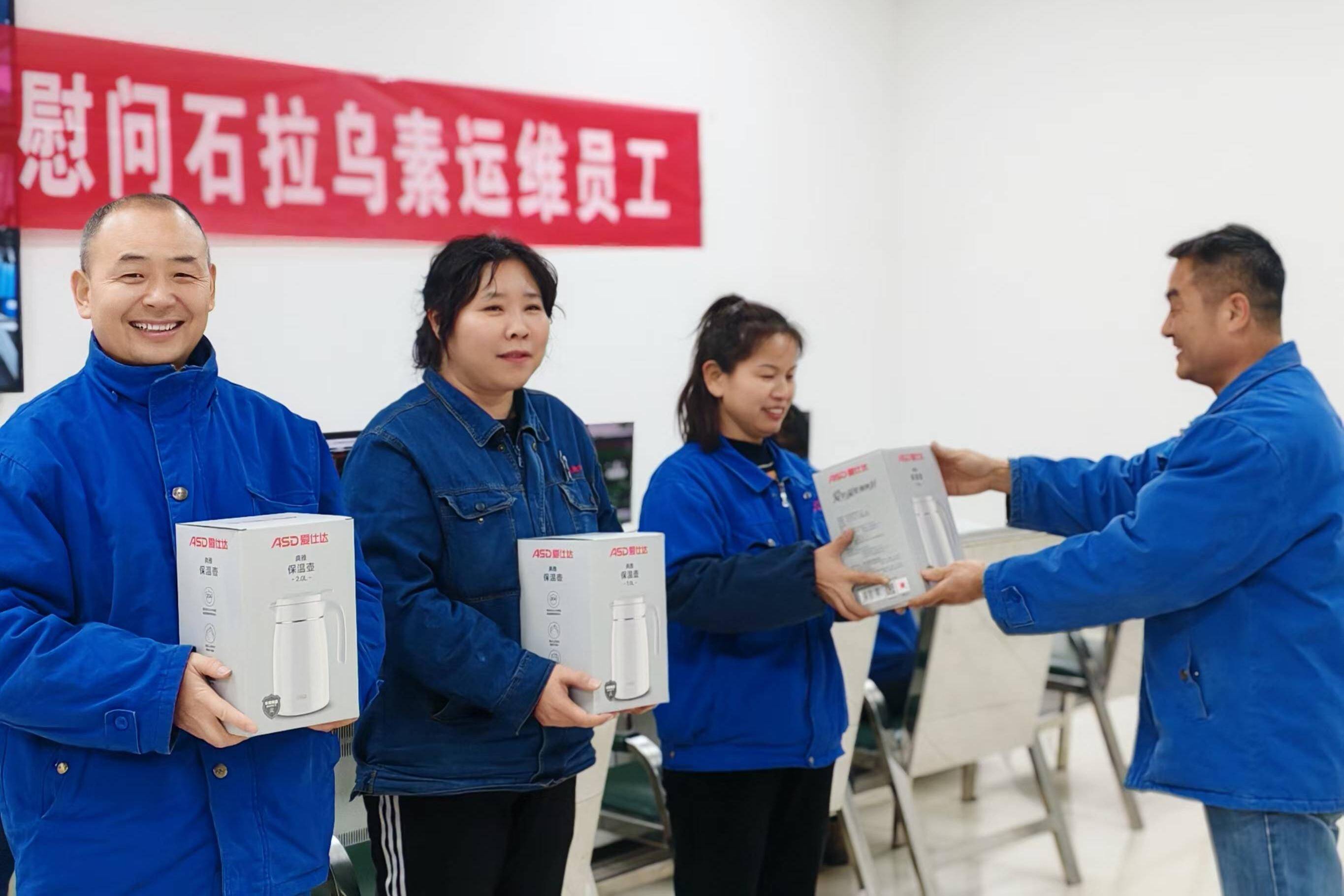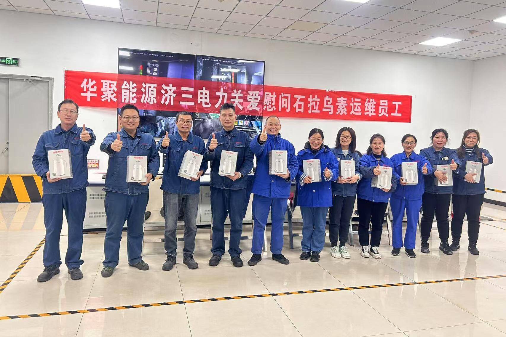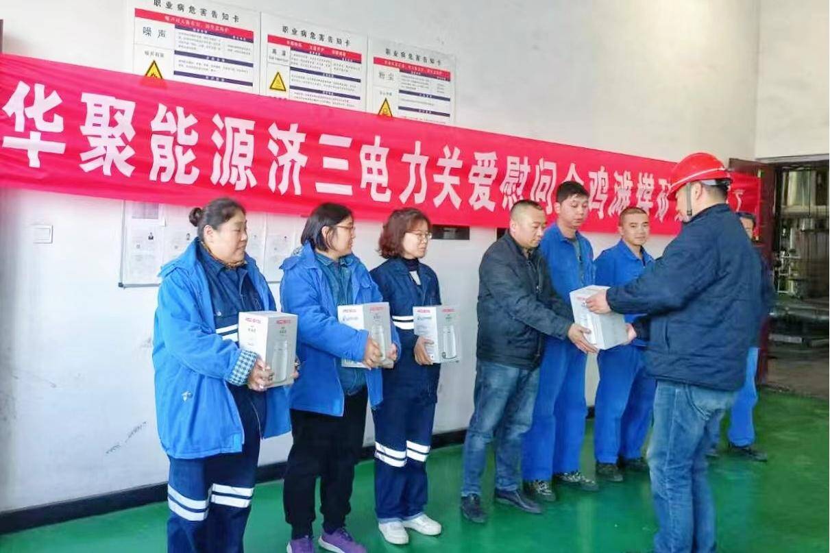 近日陕蒙地区气温骤降,华聚能源济三电力坚持关心关爱驻外职工生活,精心准备慰问品,送给千里之外的运维职工,传递大家庭的关爱和温暖,增强归属感和幸福感。