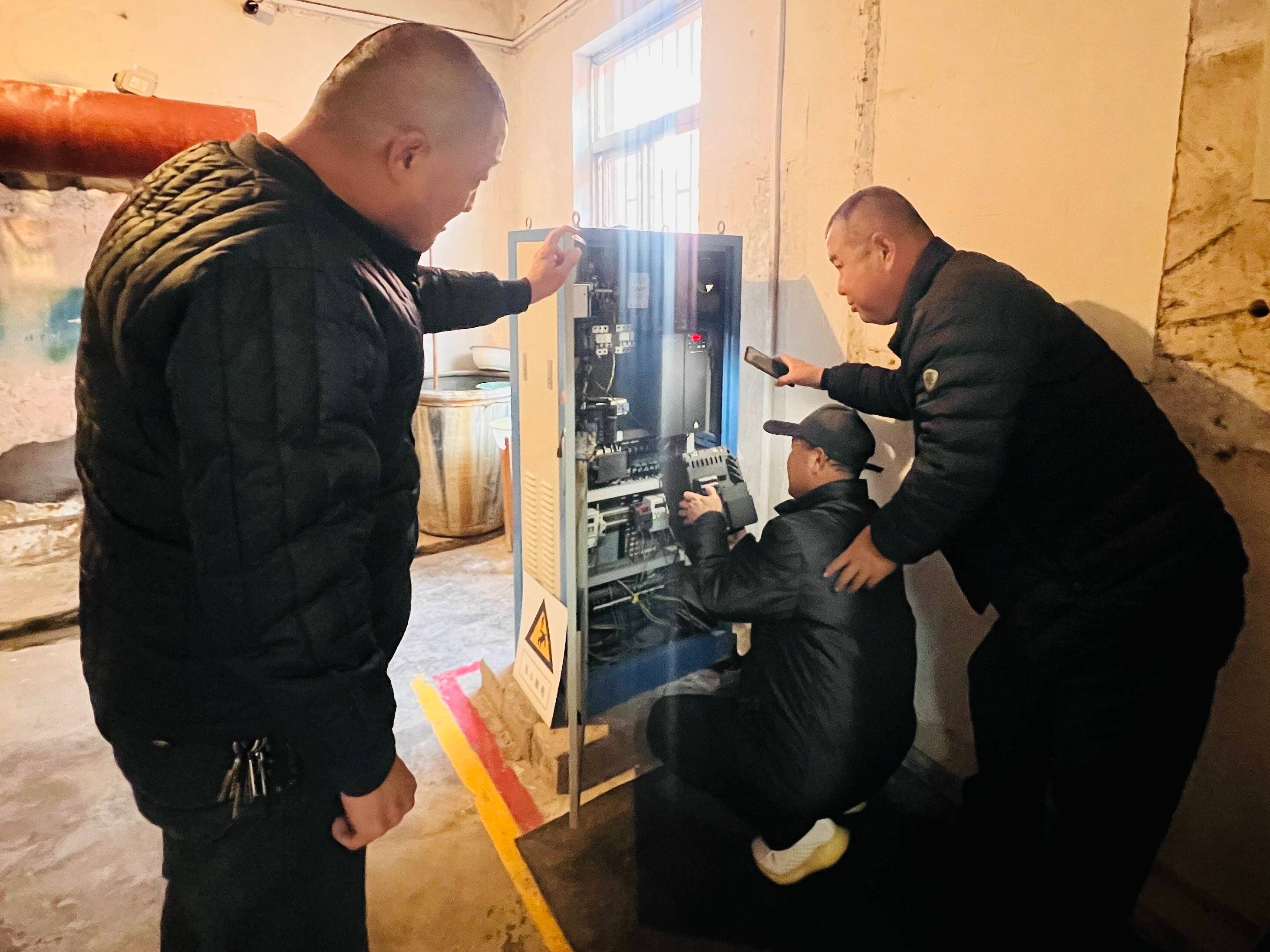 后勤维修组第一时间奔赴泵房,尝试对控制管网压力的变频器进行调整,试图将压力恢复正常水平,然而变频器无法调整。紧急关头,后勤服务中心负责人迅速联系共建党支部职业技能培训部党支部党员、电工高级讲师赵玉兵老师前来“会诊”。他凭借丰富经验与精湛技术仔细评估、深入检修,反复对变频器进行调试,都无法达到正常值,起不到变频作用,始终是全速运转,最终确认变频器已彻底损坏无法继续使用,更换新设备成为解决危机的唯一出路。