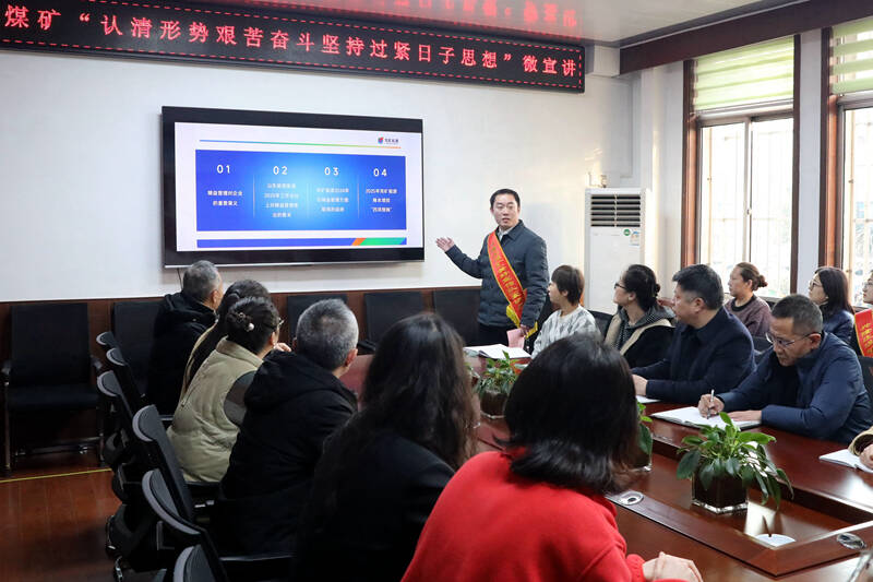 “美好宣传队”劳模宣讲员秦钦,形势任务宣讲员郭羽分别以“学习贯彻两级公司2025年工作会议精神”“认清形势 艰苦奋斗 坚持过紧日子思想”为题,对当前两级公司和矿井的工作目标和形势任务进行了解读,让职工群众能够听得懂、听得进、愿意听。