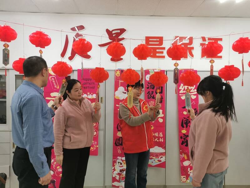 在猜灯谜区域,数十条灯谜涵盖传统文化、生活常识、科普知识等多个领域,既有文化底蕴又充满趣味,职工们或三五成群热烈讨论,或独自凝思苦想,猜对灯谜后的喜悦之情溢于言表。
