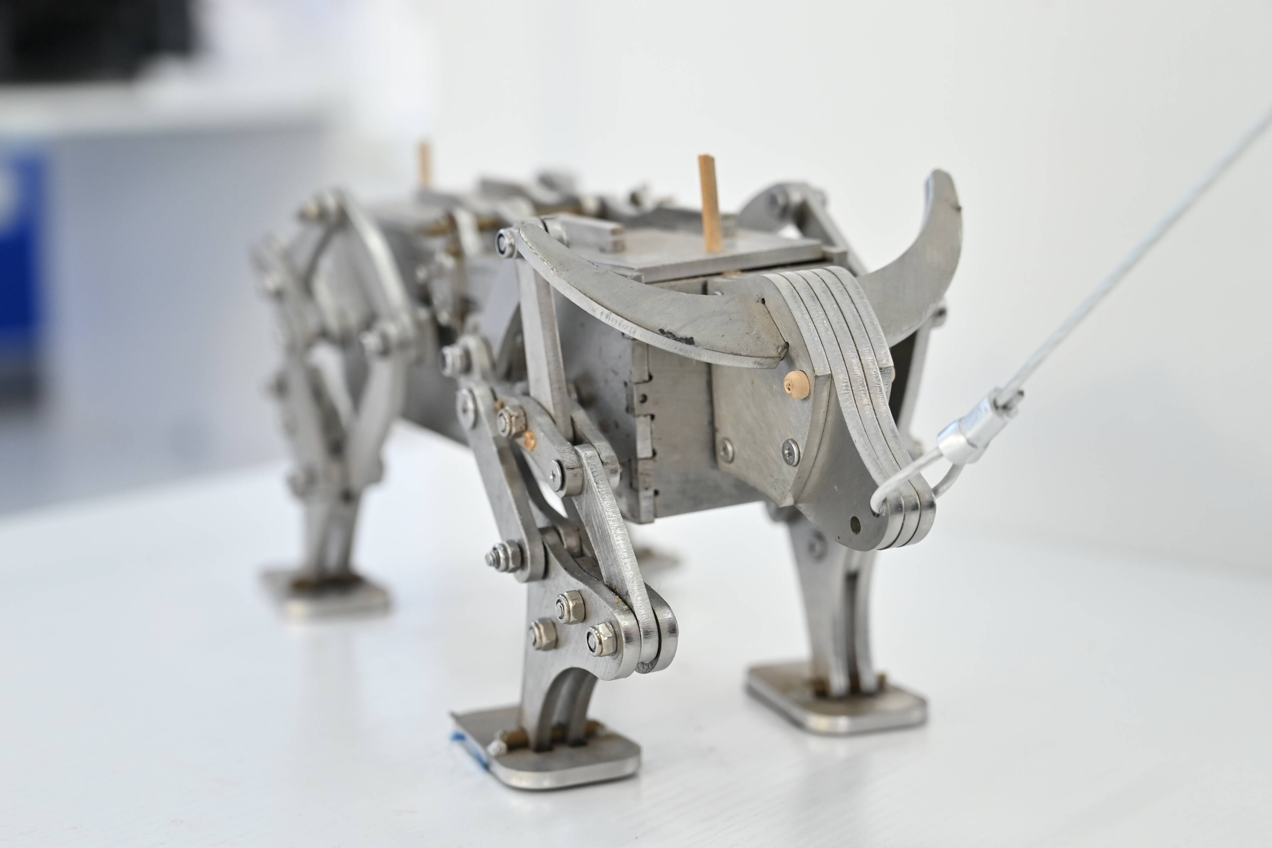 在南屯煤矿新质生产力实践基地创新模型展示区,有这样一件特殊的展示品,一件纯手工制作的“木牛流马”模型。