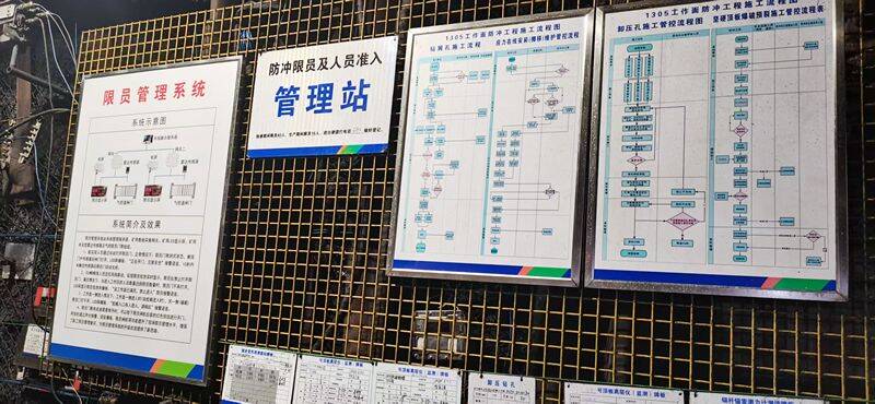 此外,现场安全生产标准化建设持续提升,先后在限员站处增加不锈钢橱柜、落地式限员警示牌板、重点防冲工程管控流程图、智能限员闸机使用说明等宣传牌板。下步,该公司将根据现有经验,优化制定采煤工作面防冲限员站建设标准,为以后采煤工作面的防冲限员站建设提供标准样本。