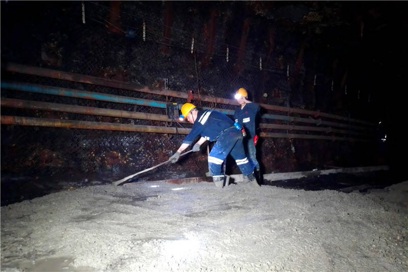 此次63下03轨顺的地坪施工任务极为艰巨。在长达1372米的区域内都需要铺设地坪,而且在多个收尺点之间的地段,还面临着淤泥清理、卧底作业等棘手难题。施工初期,习惯了办公室环境的机关部室人员“身入”现场后,一时间难以适应井下复杂且艰苦的作业条件。搅拌混凝土、搬运物料等高强度的体力活,更是让大家体力严重透支。但面对困难,没有一个人选择退缩。他们利用业余时间,如饥似渴地恶补打地坪技术知识,主动向经验丰富的老师傅虚心请教,努力提升自己的施工技能。