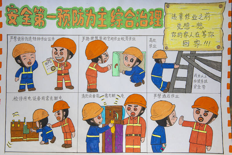 有的作品描绘了工人在操作前认真检查设备的场景,传递出遵守安全操作规程的重要性;有的则刻画了家人等待亲人平安回家的画面,从亲情角度唤起职工对安全的重视 ,“画”里有“话”地告诉大家什么该做、什么不该做,富有较强的安全警示意义。