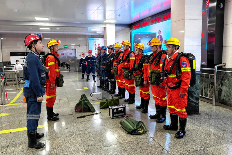 “险情就是命令,抢险刻不容缓。”调度员接到报警后立即指示作业人员沿水灾避灾路线撤退升井,随即启动《矿井井下水害事故专项应急预案》Ⅰ级响应。随后,综合协调组、抢险救灾组、技术专家组、医疗救护组、物资供应组等10个应急小组迅速集结并按照预定方案,紧密配合,有序开展救援行动。
