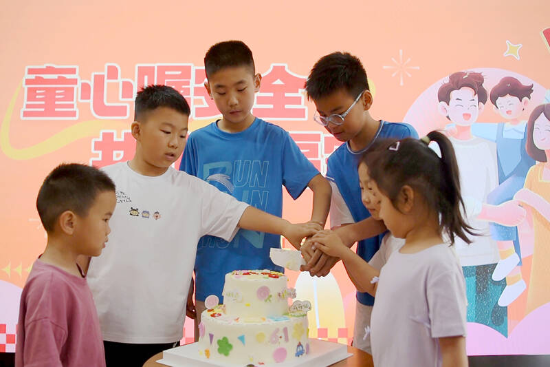 “孩子们,一起切蛋糕喽!”该矿工会为小朋友们专门定制了“六一”蛋糕,孩子们围在一起,将蛋糕切开,共同享受这甜蜜幸福的时刻。