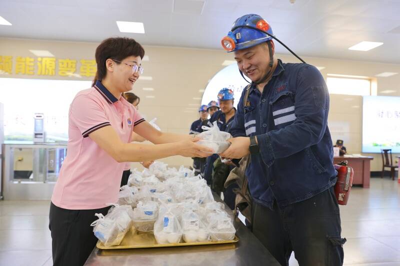 “刚到井口就闻到了香味,一上井就吃上了粽子,感觉太好了。”职工从协管员手中接过粽子时,幸福甜蜜的笑容洋溢在脸上。