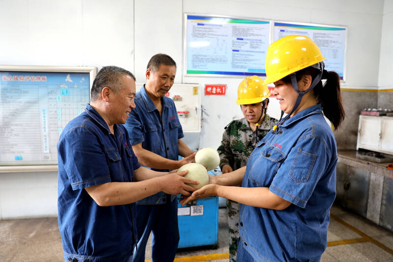 端午节前夕,该中心便精心选购了蜜枣粽子、冰瓜等节日慰问品,并在多个岗点设立临时加热点,为不同时段上班的职工提供 “二次蒸煮”服务,确保每个岗位都能收到带着“锅气”的温暖。冰瓜以 “吃瓜群众” 热梗包装,附手写卡片“吃完粽子,记得检查皮带跑偏”“忙里偷闲,先甜后忙”等俏皮标语,在传递清凉的同时,用轻松话术缓解生产一线的紧张氛围,让关怀覆盖全时段、全岗位,既暖胃又 “走心”。“没想到下了夜班还能吃到香甜的粽子,真的很感动,这份关怀让我们在辛苦工作之余心里暖暖的。”该中心职工纷纷表示。