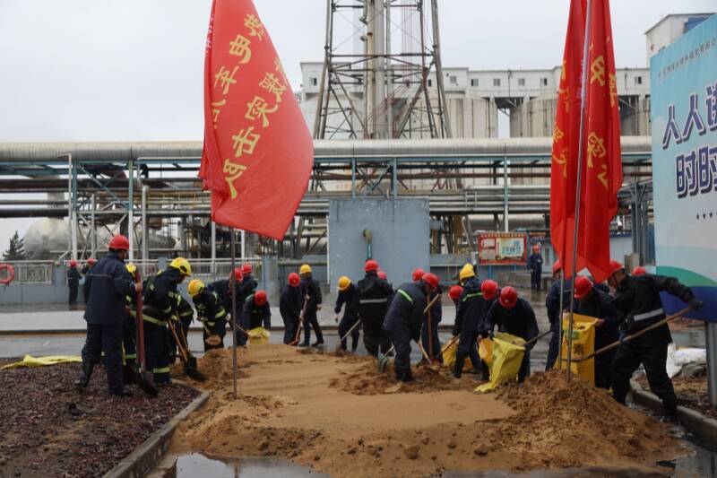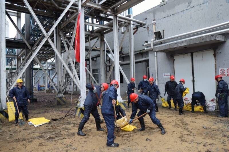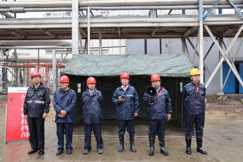 此次演练模拟极端雷雨天气引发二期装置外电网断电和雨水泵站溢流等突发状况。结合突发“险情”,开展实战演练,全方位检验各车间断电应急响应能力与应急救援队伍、救援物资保障水平。