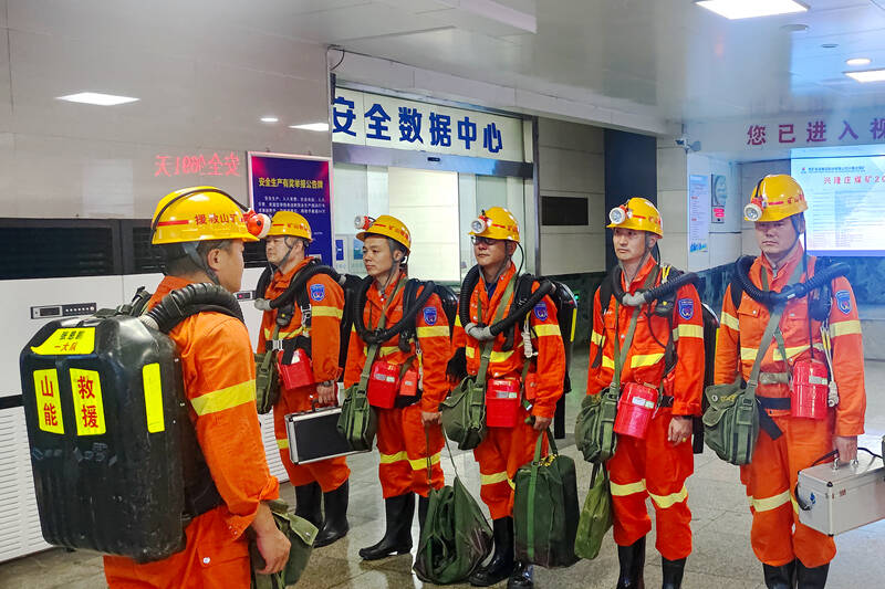 此次演练,模拟该矿中翼辅助运输巷迎头发生局部冒顶,因撤离不及时导致1名作业人员被困。事故发生后,现场人员立即向值班及调度指挥中心汇报,并迅速组织现场作业人员停止工作、切断电源,按照避灾路线有序撤离。同时,该矿立即启动《顶板事故专项应急预案》Ⅰ级响应,成立应急救援指挥部,并模拟向兖矿能源、政府有关部门及行业监管监察部门上报事故信息,召请驻矿救护中队、兖州兴隆庄医院组织救援,完成应急救援全过程。