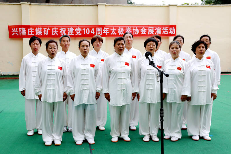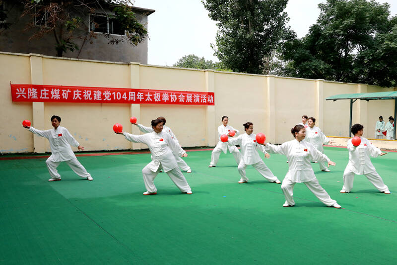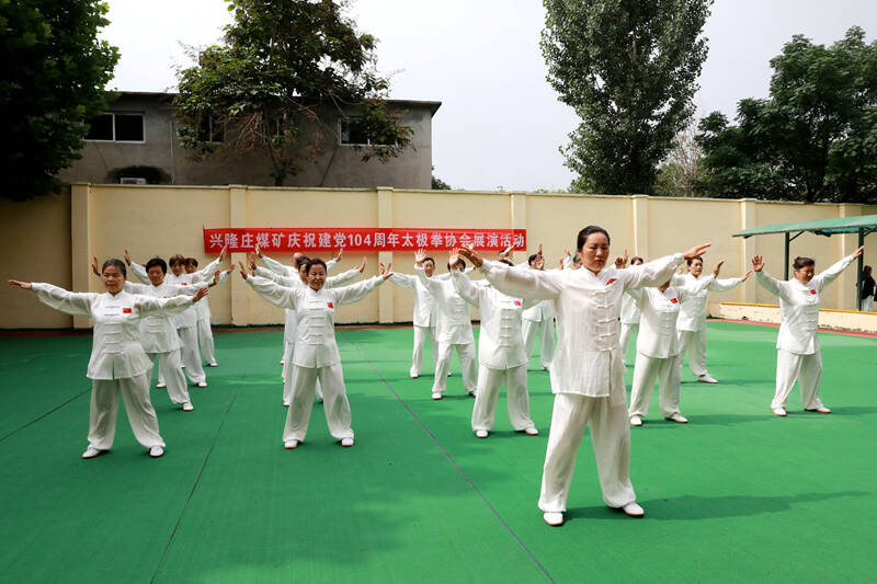 6月27日,兴隆庄煤矿举行迎“七一”太极拳展演活动,80余名太极拳爱好者和矿区离退干部职工齐聚一堂、一展风姿,共同庆祝中国共产党成立104周年。