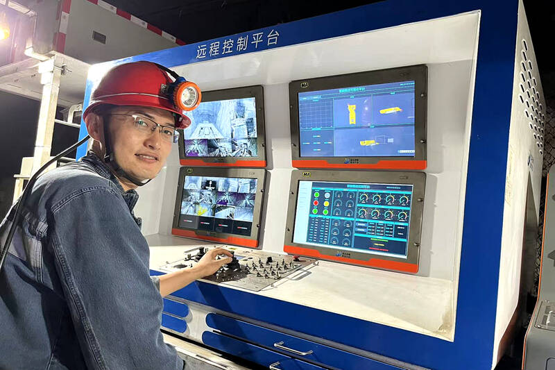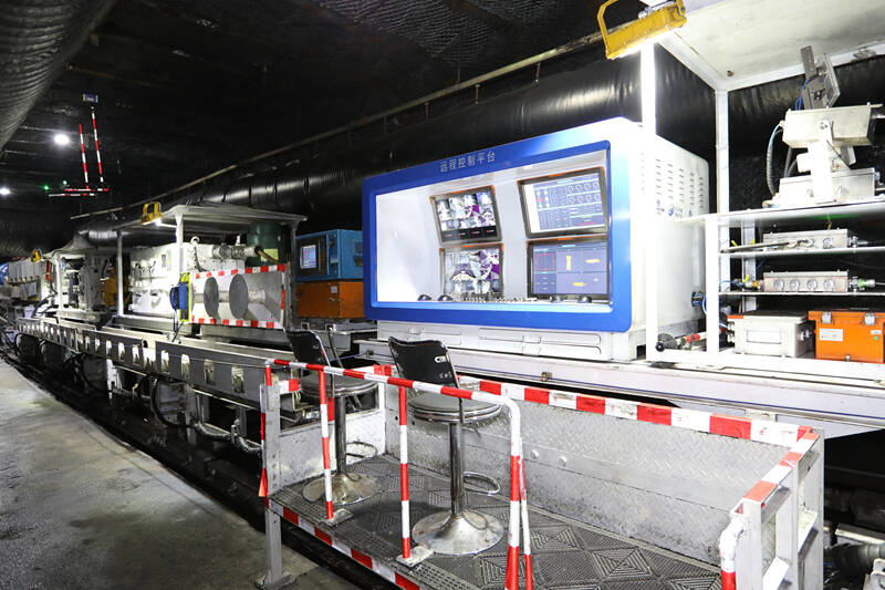 只见他聚精会神地盯着电脑屏幕,在距离迎头30米处观看远程遥控截割系统的实时“直播”画面。手指轻轻按下按键、扳转手柄、点击指令……一番简单操作后,这台“巨兽”便挥舞着“手臂”,听话地在迎头依次扫底、掏槽、刷帮,煤壁如潮水般规律剥落……17分钟后,工作面一排推进顺利截割完成。整个过程中迎头没有矿工的身影,只有智能系统冰冷的计算与机械臂炽热的效率。