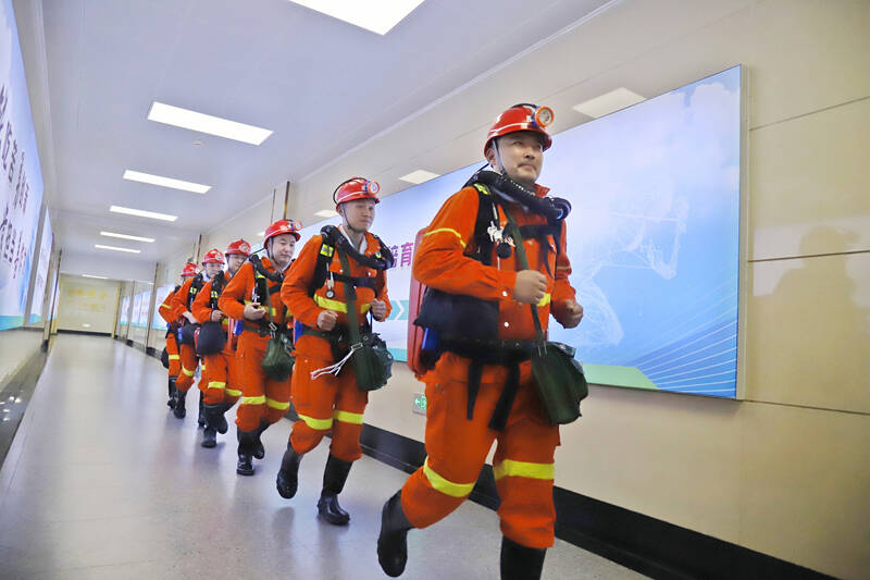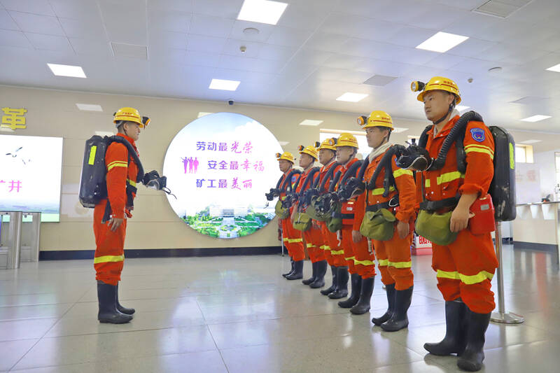 “立即启动火灾事故应急预案Ⅰ级响应!”演练总指挥、矿长周波下达命令后,相关矿领导、副总师、技术专家及专业部门负责人紧急制定救援方案;综合协调组、抢险救灾组、技术专家组、安全监督组、物资供应组等10个应急小组迅速就位,到达指定地点,根据职责分工,开展救援任务;区队值班人员现场清点人员,确保无一遗漏。经过“紧张救援”,井下演练作业人员有序撤离,全部安全升井。