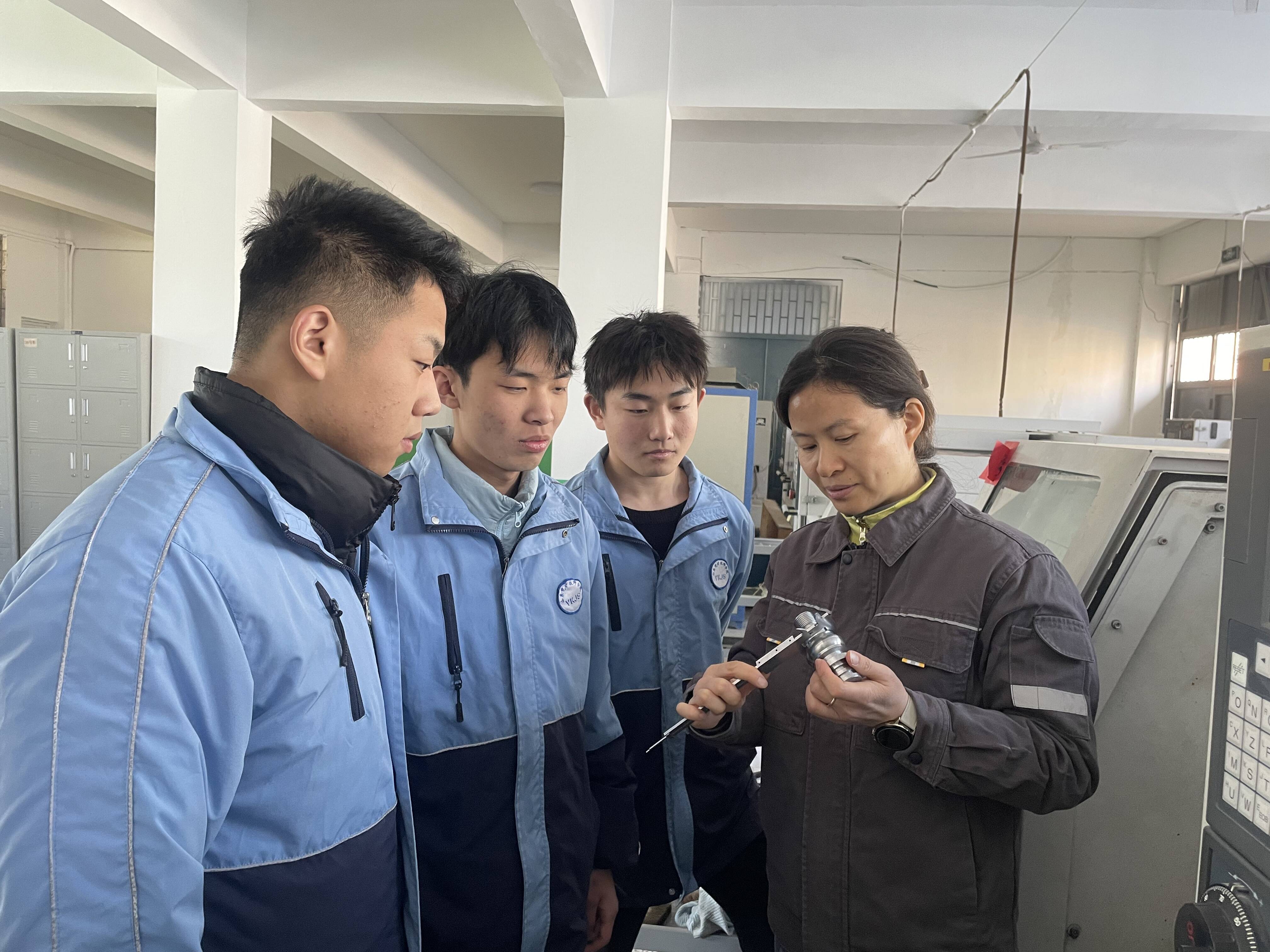 她虚心求教,积极向优秀的老师前辈们学习,将理论与实践相结合,认真领悟、借鉴、创新,不断将丰富的知识及经验运用到实际教育教学工作中去。为了促进自己不断地学习与进步,她积极参与教研活动,努力搞好教学工作。严格按照学院要求,积极学习新课改等内容,提高教改意识,认识教改意义。积极探讨、交流教学目标、方法和教学过程设计。在教学之余,她注重自身发展进步,除了听课、评课、参加教研组教研活动外,从思想上,时时刻刻提醒自己、自我反思、自我提高思想境界,不断探索创新,积累了丰富的教学经验,逐步形成了自己新颖、独特的教学风格。近年来先后承担《项目式数控加工一体化课程》《项目式普通车床一体化课程》《钳工一体化课程》《机械制图与CAD》《机械加工技术与设备维护》等科目的教学,年课时量达到800余学时。
