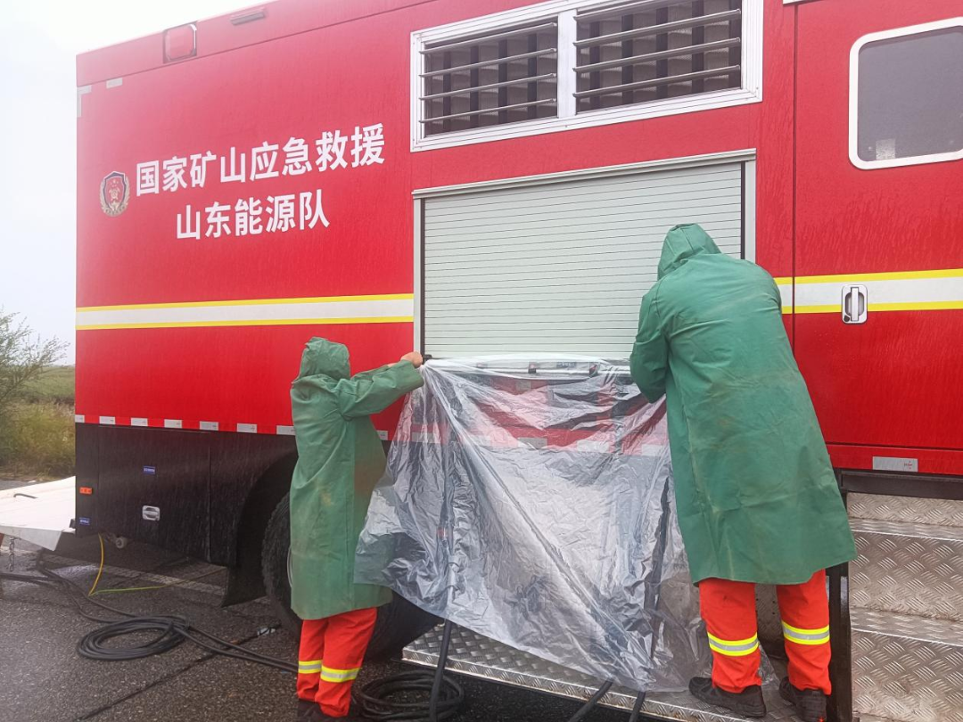 抵达现场后,山东能源队坚持把安全作业放在首位,严格执行现场安全管理制度,每日开展隐患排查并立即整改,切实做到安全防范无死角。针对强降雨等突发天气,队伍提前部署防护措施,迅速完成关键设备防水保护,有效保障排涝作业连续稳定运行。同时,队伍注重维持现场整洁,每日清理积水和杂物,从源头上杜绝次生安全隐患,确保救援现场井然有序、安全高效。